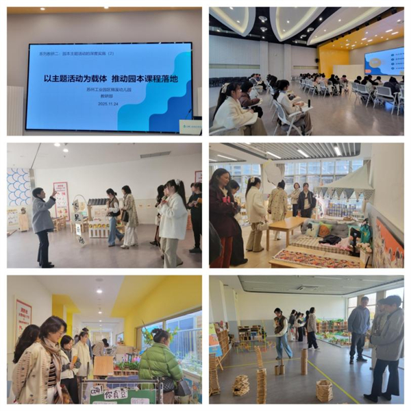 首先,教师们观摩了一场以“以主题活动为载体 推动园本课程落地”为主题的园本教研活动。教研活动中,锦溪幼儿园的老师们围绕本园的园本课程主题,展开了生动有趣的讨论。通过两个班本课程案例的分享,教师们分组进行了共性问题解决策略的小组讨论。我园教师认真聆听、详细记录,从中汲取了很多有效信息,以便在自己的工作实践中运用和实施。